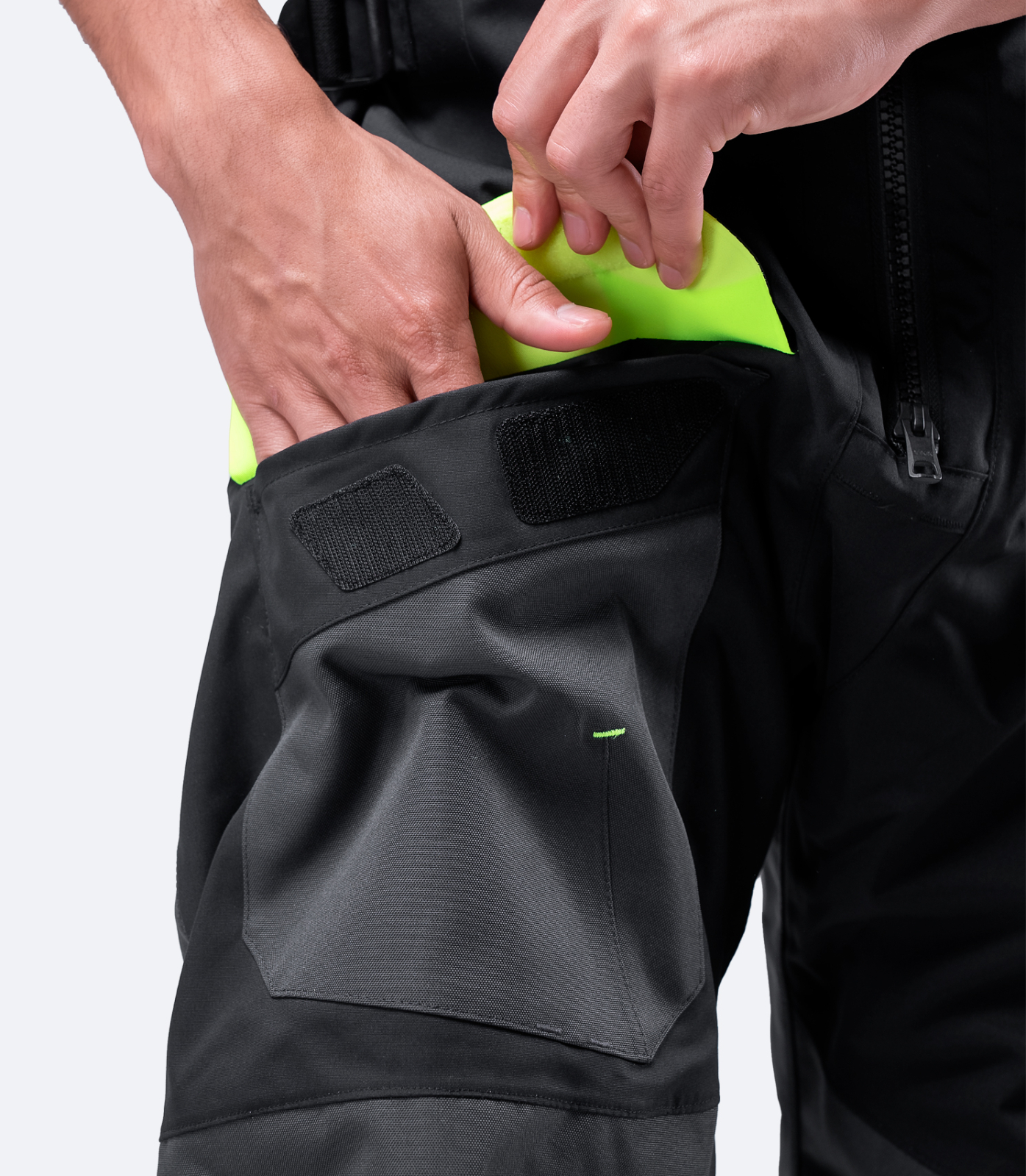 • Highly abrasion-resistant 500D nylon reinforcements on seat,knees, and back hem